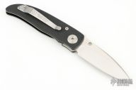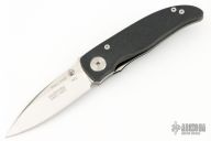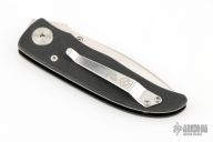 This knife by Klotzli is a Michael Walker design, it features a satin finished wharncliffe blade with single thumbstud and notched thumbrest. The handle has black G-10 scales, titanium liner. Nice detent, lockup and blade seating. Has a couple light scuffs, excellent condition otherwise.