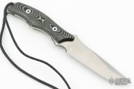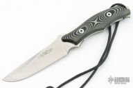 This knife features a satin finished blade with a false top edge, notched thumbrest and tang, .158" blade stock and 1.300" blade depth, full tang construction with micarta scales. Excellent Condition.