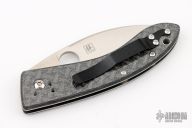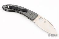 This Lum Chinese folder from Spyderco has a satin finished blade with thumbhole and false top edge. The handle has carbon fiber scales, stainless steel liners, and a black up or down reversible stainless steel clip. Comes with original box and papers. New condition.