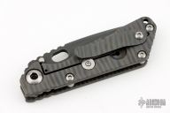 In 1988, he began making specialized knives for use by the military. This turned out to be fortunate turn of events, both for Mick and for the knife using world at large. Mick’s approach was to not get burdened by the weight of past designs. He started with a tabula rasa, a clean slate, informed only by his own experiences and knowledge of what a soldier needed in a knife. The knives he made didn’t look like the hunter-inspired knives seen in most PXs; instead they were almost brutish in their functionality: beefy, solid, and with unbreakable ¼” stock full tangs. These knives were the first indication of his innovative approach: in addition to their utilitarian design, the knives carried a subdued finish and subdued sheaths. No one carrying a Strider knife was going to be spotted because of sunlight glinting off of polished steel or a glossy leather sheath. Soldiers, policemen, and other men going into harm’s way couldn’t buy them fast enough. Mick sampled some good ideas, but made them great. For instance, he was not the first to wrap a knife handle with paracord, but he was the first to do it in a way that was tough enough for sustained infantry use. His knife line grew over the following years to include different varieties of fixed blades, all distinctive and many with specialized uses. But constant in all of them was a disregard for convention, and a desire to try new ideas. An example of this was the Ajax – it featured a very wide blade surface clearly designed to inflict damage. It drew on the weapons carried by Roman legionnaires, yet was modern and usable in the 21stCentury battlefield. Mick also worked on his technical skills, always striving to become better at the physical craft. At the 2002 Blade Show, a group of the best tactical knifemakers in the country decided to compete with each other to produce the most innovative and interesting fixed “battle blade” at the show. Mick’s entry, an incredible integral knife made out of ½” titanium stock with a zippered composite blade, gorgeous handles, and integral guard was the unanimous winner, and effectively retired the competition.