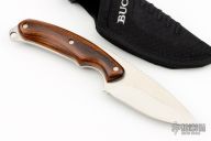 This Buck features a satin finished blade with notched thumbrest, .140" blade stock and 1.540" blade depth, full tang construction. The handle has wood scales. Comes with original black nylon sheath. Has a couple light scratches, otherwise excellent condition.