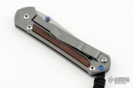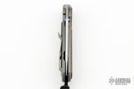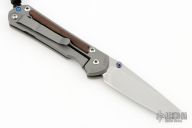 This Small Sebenza features tumble finished tanto Magnacut blade with dual anodized thumbstuds and a notched thumbrest.  The handle features a bead blasted titanium frame with Macassar Ebony inlays. Has a few light scuffs, otherwise excellent condition. Comes with original box, sheath and papers dated February 15, 2023.