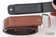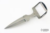 This is a belt buckle knife by Bowen USA. Has a double edged blade, .162" blade stock and 1.032" blade depth, integral construction. Comes with original black leather 33-37" belt and a brown leather 34" belt. Excellent condition.