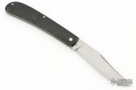 This Slipjoint by Master Smith Don Hanson III features a hand rub satin finished blade with nail nick and false top edge. The handle has carbon fiber covers with stainless steel escutcheon, and a steel spring. Has half stop, flush in all positions. Excellent condition.