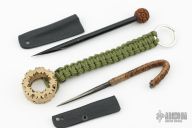 This Neck Spike by Fred Perrin has a carved wooden ball handle. 6" OAL. Comes with a kydex sheath. New from maker.