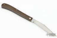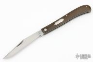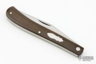 This Slipjoint by Master Smith Don Hanson III features a hand rub satin finished blade with nail nick and false top edge. The handle has green canvas micarta covers with a stainless steel escutcheon, and a steel spring. Has half stop, flush in all positions. Has a few light scratches, otherwise excellent condition.