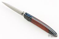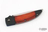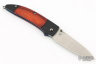 This 480 Shoki Nak-Lok features the unique Nak-Lok that uses tensile strength rather than compression to lock the blade. Bolster button releases blade. Anodized frame with G10 bolsters and wood scales. Comes with leather pouch with clip. Excellent condition.