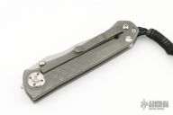 This Umnumzaan Framelock Folder by Chris Reeve Knives has a stonewashed clip point blade with dual thumb studs and notched thumb rest. Handle is bead blasted titanium with titanium barrel spacer, titanium tip up clip, and lanyard hole with lanyard. Nice detent, lockup and blade seating. Has some scuffs and scratches, otherwise good condition. Comes with original papers dated February 25, 2009.