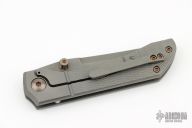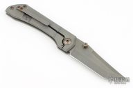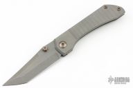 This Mini Prodigy from Simeon Custom Knives features a "Smoke" finished blade with dual anodized titanium thumbstuds.  The handle has a stonewashed titanium frame with a matching tip up pocket clip.  Comes with a padded case and COA dated March 24. Rides on bearings, nice detent, lockup and blade seating. New From maker.