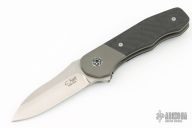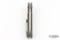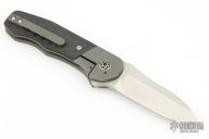 This MB-1 by Chad Nell features a mirror finished drop point blade, satin flats with notched thumbrest and flipper. The handle has a bead blasted titanium frame with a matching tip up pocket clip and carbon fiber scales. Nice detent, lockup and blade seating. Rides on bearings. Includes a padded zippered case.  Excellent Condition.
