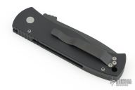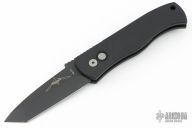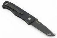 This Emerson/Pro-Tech CQC7 automatic has a chisel ground black DLC finished blade with a plain edge and a solid black aluminum handle. Black stainless steel clip. Coil spring. Excellent condition. Comes with original box and papers.