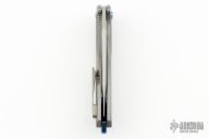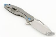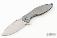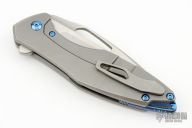 This Arius by Koenig knives features a Burnished w/ PF finished blade with thumbhole and flipper. The handle has a bead blasted patterned titanium frame with a titanium tip up clip, titanium backspacer. Has ceramic bearings and a ceramic detent ball. Nice detent, lockup and blade seating. Comes with original box and COA March 27 2023. Gen4B12. Has light scuffs and scratches throughout, great condition otherwise.