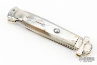 Angelo Campolin Sr. was born in 1923 in Maniago, Italy. He worked on perfecting his knife making skills before WWII and at this time made his first switchblades. After the war, in 1947 he started his company and made 30 stilettos with the marking “Angelo Campolin”. In the 1970’s Angelo’s son Gianni started to work in the company and they were specializing in folding hunting knives and also manual folding stilettos for the Robert Klaas company in Solingen Germany with their Kissing Cranes mark. In 2002 American switchblade collectors Dan Fuller, Brad West, and Tim Zinser were visiting Maniago and enjoying a few glasses of wine in a bar with Angelo Jr. and Gianni. The discussion was about a new name for some knife projects they wanted to pursue. It was Brad West that suggested the tang stamp should be AGA, for Angelo, Gianni, Angelo, thus representing three generations in the knife making business. The Campolins liked it and it stuck. In the beginning it was just a few items, but grew to the point where now there are 12 models and different scale options. The goal has been to offer quality switchblades using the old methods and traditions. Being a collector himself, Angelo Jr. knows what others like. The company headquarters has moved to Austria with production still in the original Maniago shop, as well as the others in Maniago that produce the knives for A.G.A. Campolin.