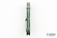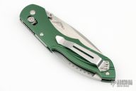 The Switchback is a Warren Osborne design featuring a main AXIS actuated blade and a slipjoint second blade on the back end. This Switchback has a stonewash/polished blade and a green aluminum frame. Includes original box and drawstring pouch. Excellent condition. Marked " Jan 2003 Prototype" on the blade.