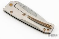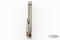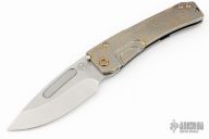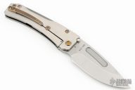 This Slim Midi Marauder from Medford Knife and Tool features a stonewashed drop point blade with thumb stud and recess. The handle is comprised of a milled, anodized, and tumbled titanium frame with matching tip up clip over anodized spacer pins with integrated lanyard hole. Excellent detent, lockup, and seating. Original box, hard case and papers dated April 26, 2022. Excellent condition.