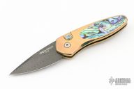 This custom Sprint side-opening automatic by Pro-Tech Knives features a Stainless Damascus blade. The handle has a satin finished and anodized titanium frame with a tip up milled titanium clip. Handle inlay is abalone. Comes with original box and papers. Excellent condition.