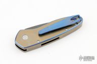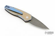 This custom Sprint side-opening automatic by Pro-Tech Knives features a Vegas Forge Herring Pattern Damascus blade.  The handle has a milled and anodized titanium frame with a matching tip up pocket clip.  Mother-of-pearl push button.  Includes the original box and papers.  Excellent condition.