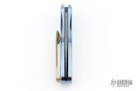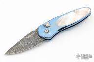 This custom Sprint side-opening automatic by Pro-Tech Knives features a Stainless Damascus blade. The handle has a satin polish finished and anodized titanium frame with a tip up stainless steel clip. Handle inlay is black lip pearl. Comes with original box and papers. Excellent condition.