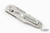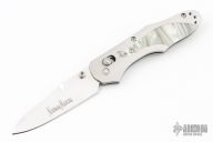 This axis lock folder by Benchmade is a Warren Osborne design, it features a drop point mirror polish finished blade with dual thumb studs. Satin finished stainless steel frame with pearlex inlays with 2 ball bearings, purple aluminum backspacer, stainless steel tip up clip, left or right reversible. Comes with original clam shell, clasp box. Has some light scratches, otherwise excellent condition.