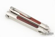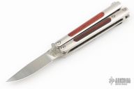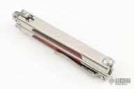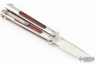 This 31-01 Rosewood Balisong is #29 of 50. It features a stonewashed blade and satin finished stainless steel handles with rosewood inlays and a spring latch. Comes with original box and papers. Excellent condition. RARE!