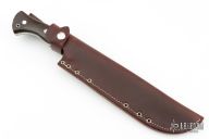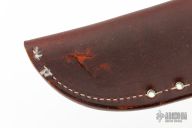 The Bark River Grizzly is a collaboration between Mike Stewart and Peter Kohler of Dark Timber Knives. The Grizzly is the flagship of the Dark Timber line and has been Peter's signature knife. The knife is co-branded with the Bark River logo on the front of the blade and FINAL RUN on the back. Has brown canvas micarta scales with aluminum and mosaic pins. Satin finished blade with fullers and false top edge, .274" blade stock and 1.531" blade depth, full tang construction. Comes with brown leather sheath and original box. Has some scratches, has been resharpened, has a couple of dings in the scales, otherwise good condition.