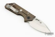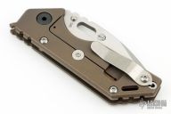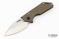 This 3/4 AR by Strider Knives features a stonewashed blade with notched thumbrest and thumbhole. The handle has a tumbled and anodized titanium frame with a stonewashed titanium tip up clip. Nice detent, lockup and blade seating. Excellent condition.