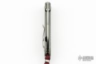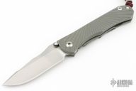 This Umnumzaan Framelock Folder by Chris Reeve Knives has a stonewashed clip point blade with dual thumb studs and notched thumbrest. Handle is bead blasted titanium with titanium barrel spacer, titanium tip up clip, and lanyard hole. Comes with original box and COA dated March 11, 2015. Nice detent, lockup and blade seating. Has some scuffs, otherwise excellent condition.