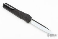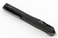 This Cypher OTF is a collaboration between Anthony Marfione and DC Monroe. It features a white standard blade with satin flats and notched thumbrest. The handle has a black anodized aluminum handle with all black hardware and titanium tip down clip. Comes with original box and papers. Excellent condition. 12/2017 and #010.