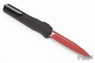 This Cypher OTF is a collaboration between Anthony Marfione and DC Monroe. It features a red standard blade with satin flats and notched thumbrest. The handle has a black anodized aluminum handle with all black hardware and titanium tip down clip. Comes with original box and papers. Excellent condition. 10/2017 and #035.