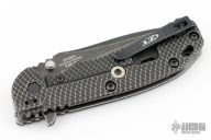 This 0560BW Framelock Flipper (#0148) has a blackwashed Elmax drop/ spear point blade with dual thumb studs and notched thumb rest. Handle is 3-D machined black G10 over stainless steel single liner, and 3-D machined blackwashed titanium (lock side). Black stainless steel 4-way reversible clip. Lanyard hole at butt. Excellent condition. Comes with original box and papers.