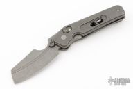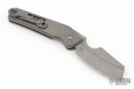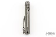 This custom Rook flipper is a gorgeous design from Serge Panchenko. It's a full custom knife handmade by Serge in his Sacramento shop. The 2.95" reverse tanto blade is made from CPM-20CV stainless steel with a stunning dark stonewash finish. The handle is made from a milled titanium frame with checkered aluminum onlays for a fantastic pop of polished color. The action created by the flipper tang is light, crisp, and extremely fast. This blade jumps out of the handle like a rocket and locks up nice and tight. New from maker!