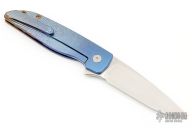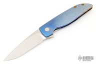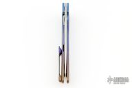 This Rask by John Grimsmo of Grimsmo Knives features a stonewash finished blade with notched flipper. The handle has a "Starburst" milled, anodized and tumbled titanium frame with matching tip up clip that has hidden screws, titanium barrel spacers and screws. Numbered #2715 on the spine of the blade. Includes original box and COA dated March 27, 2024. Excellent condition.