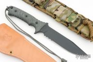 "Continuing the proud tradition of Chris Reeve Knives honoring elite military, the Reeve/Harsey collaboration - the Pacific - is the civilian version of a knife created to celebrate the 50th Anniversary of 1st Special Forces Group. Based in Ft. Lewis, WA, 1st Group's theatre of operations is Asia and the Pacific, so the name Pacific has been chosen to honor the home and work place of these fine soldiers." Comes with camo nylon spec-ops sheath and a factory brown leather sheath..  Includes the original box and papers, Dated March 27, 2024.  New Condition.