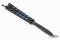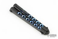 This Model 46 Bali-Song by Benchmade has a black dagger blade with a false top edge. Has black coated titanium handles with T-latch. Comes with benchmade drawstring pouch and a nylon zipper case. Excellent condition.