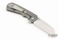 This Delta Flipper by A2D Mercantile features a satin finished blade with dual thumbstuds and flipper. The handle has a stonewashed and milled titanium frame, titanium tip up clip. Nice detent, lockup and blade seating. Comes with original zipper case and dog tag. Excellent condition.