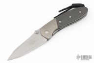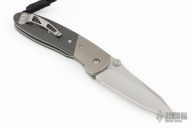 This Lightfoot Compact Combat M/A by Microtech Knives is a Greg Lightfoot design, it has a stonewashed blade with dual thumbstuds and a notched thumbrest. The handle has bead blasted titanium bolsters, carbon fiber scales, stainless steel liners and clip. Tip up clip. Marked Prototype 05/2000. Comes with modern, correctly labeled Marfione box, zipper case and pouch. Excellent condition.