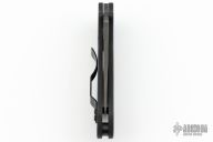 Handle: Peel ply textured, chamfered black G10 scales house inset skeletonized stainless liners, one forming the Compression Lock mechanism. A generous palm swell, index groove and pinky hook offer comfortable ergonomics and a secure grip for most users.
