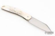 This "Scalp" Slipjoint by David Breniere features a hand rub satin finished blade with notched thumbrest. The handle has stag covers with black liners, titanium liners, stainless steel spring. Has half-stop, flush in all positions. comes with a velcro case. Excellent condition.