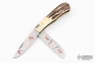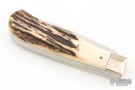 This A05 Slipjoint by Alcas features satin finished blades with nail nicks. The handle has nickel silver bolsters, stag scales, brass liners and stainless steel springs. Excellent condition. #049 of 100.
