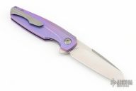 This Haptic by Holt Bladeworks features a near mirror polish tumbled blade with a notched thumbrest and flipper tab. The handle features a milled titanium frame with a titanium tip up pocket clip with hidden hardware. Nice detent, lock up and blade seating. Includes the original box, card and stickers. Excellent Condition.