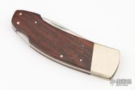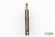 This lockback by Khyber features a mirror polished blade with nail nick. The handle has nickel silver bolsters, rosewood scales, brass liners and a stainless steel backspacer. Has some light scratches, otherwise excellent condition.