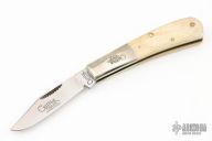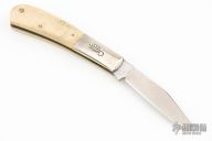 This knife by Cripple Creek has a satin finished blades with nail nick. The handle has nickel silver bolsters, bone scales, brass liners and stainless steel spring. Excellent condition.