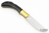 "My first knife was a filet in 1976 made from a sabre saw blade. Progressed to hunting, boot, folders in lockbacks, linerlocks, and finally automatics. Ats-34 is the primary blade steel and some Damascus from various makers. Liners and springs are of titanium and usually anodized. Some file work on blades and most liners. Various handle materials including micartas, circuit-boards, wood, stag, buffalo, ivory, pearl, and oosik." Bill is a charter member of the Florida Knifemakers Association and the local Gator Knife Club. Mentored by Frank Centofante and Mel Pardue in the 1970's.