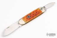 This Elephant Toe slipjoint by Case Knives has two mirror polished blades with nail nicks. The handle has nickel silver bolsters, barbwire bone covers, brass liners and pins, stainless steel spring. Has a few light scratches, otherwise excellent condition.