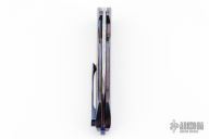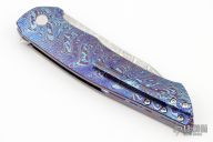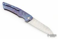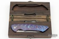 This Linerlock Flipper by Herman Knives features a Damasteel blade with flipper. The handle has a milled Timascus frame, titanium liner, Timascus backspace and tip up clip,. Nice detent, lockup and blade seating. Rides on bearings. Comes with original wood box and pivot tool. Has a couple light scratches on the mirror polished pivot, excellent condition otherwise.