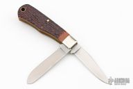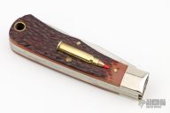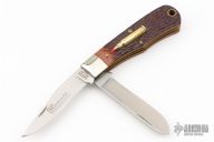 This Slipjoint from Camillus features two satin finished blades with nail nicks. The handle has nickel silver bolsters and jigged faux bone covers over brass liners and stainless steel springs. Excellent Condition.