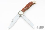 This slipjoint by Case features two mirror finished blades with nail nicks. The handle has nickel silver bolsters, wood covers, brass liners and stainless steel springs. Has some light scratches, otherwise excellent condition.