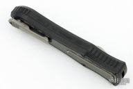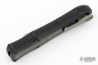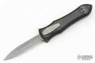 This knife is a Deadlock Model C by Grant and Gavin Hawk. It has a double-edged stonewashed blade. The handle has a carbon fiber and black aluminum frame with a tip down spring clip, titanium. The thumb slide on the handle is also titanium and handle has titanium overlays. Grant and Gavin Hawk set out to create a double action OTF with no blade play.... They did it, NO blade play. Comes with original cloth case, card and tool. Excellent condition.