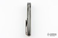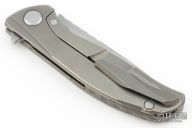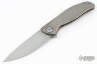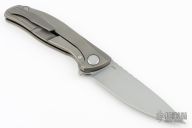 This Model 95 Zero framelock flipper from Shirogorov has a flat ground and tumbled blade with a milled and tumbled titanium frame with matching tip up clip. Excellent lockup, crisp detent, and perfect seating. Comes with original box and papers. Excellent condition.