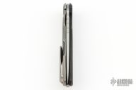 This Hati Gen3 by Shirogorov Knives features a drop point blade with notched thumbrest and flipper. The handle has marble carbon fiber and titanium frame with marble carbon fiber inlay, titanium tip up clip with hidden screws, titanium backspacer with lanyard hole. Rides on bearings, nice detent, lockup and blade seating. Comes with COA and original box. Excellent condition.